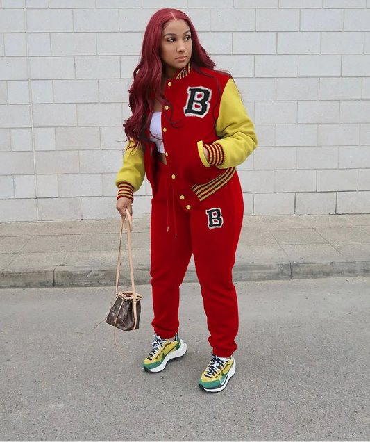 Baseball Patchwork Sweatshirt & Pants Set - 2-Piece Outfit | EverHype