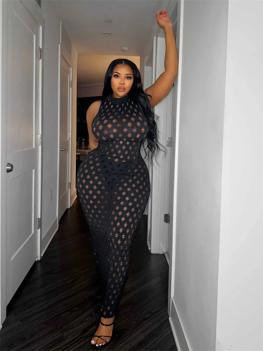 Sexy Hollow Out Knit Maxi Dress - Size Inclusive Luxury Streetwear | Club & Date Night
