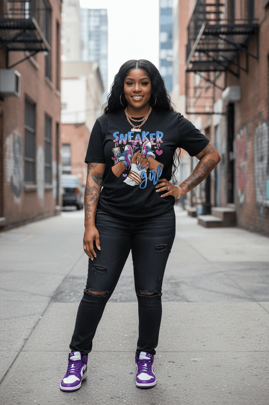 Plus Size Sneaker Girl Graphic T-Shirt - Casual Crew Neck Top