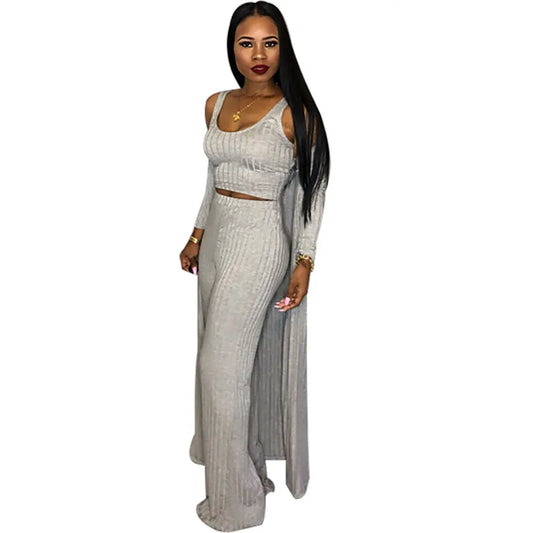 3 piece set women winter long sleeve three pieces sets for female long coat pants tops women's suits 3 piece set