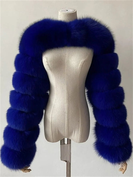 Faux Fur Jacket - Cropped Long Sleeve Coat for Women | Winter Warm Clothes