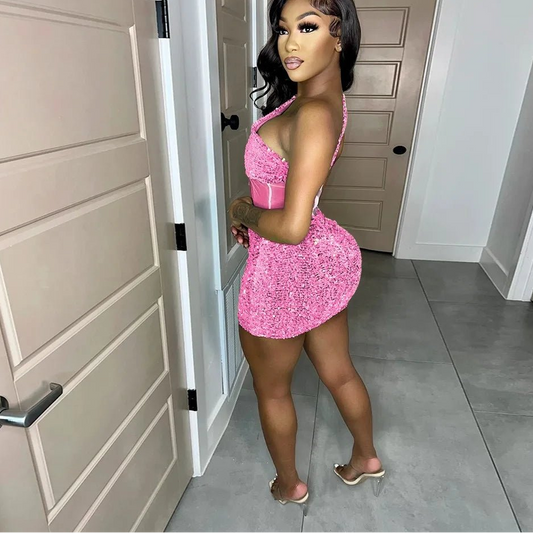 Sequin One Shoulder Party Dress - Sleeveless Backless Mini | Sexy Club Dress
