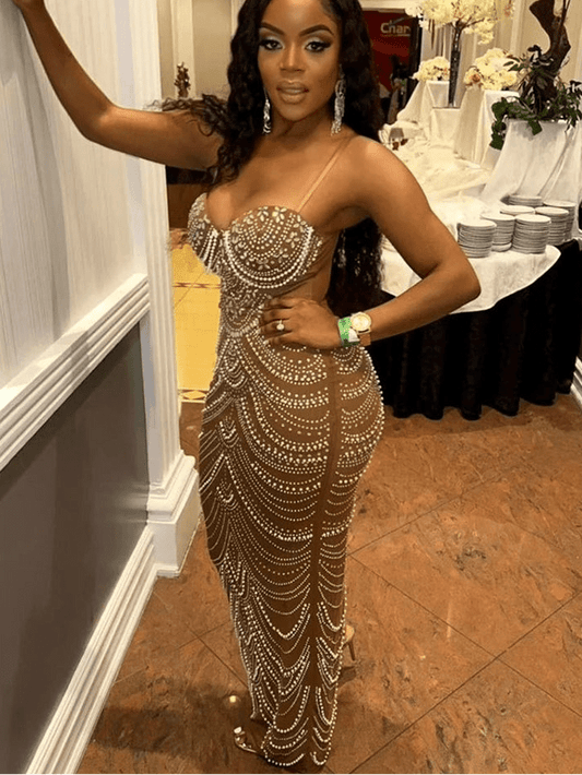 Luxury Crystal Rhinestone Dress - Sparkly Pearl Gown for Weddings & Prom