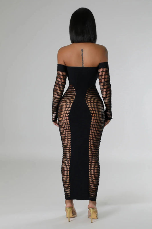 Mesh Maxi Dress - Strapless Long Sleeve Evening Party Dress for Women
