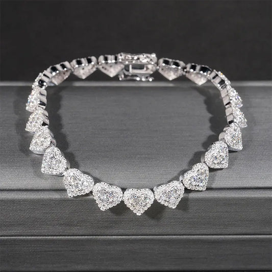 Moissanite Heart Bracelet & Necklace Set - 925 Sterling Silver Jewelry