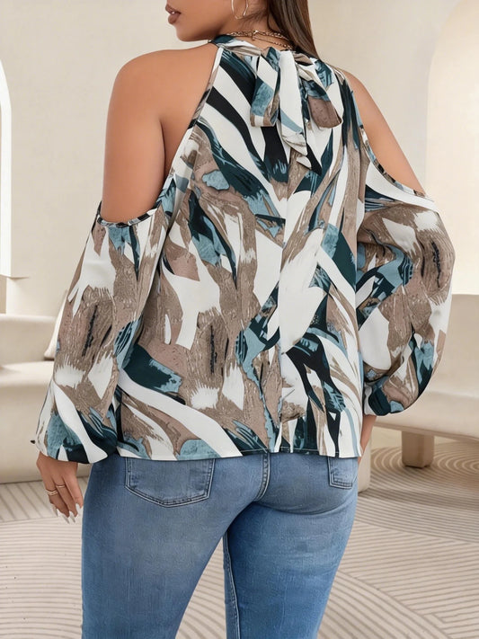 Plus Size Off Shoulder Halter Top - Elegant Long Sleeve Blouse | EverHype