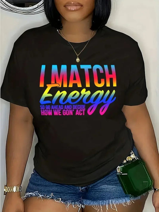 Plus Size Letter Print T-Shirt - Casual Crew Neck Short Sleeve Top for Women