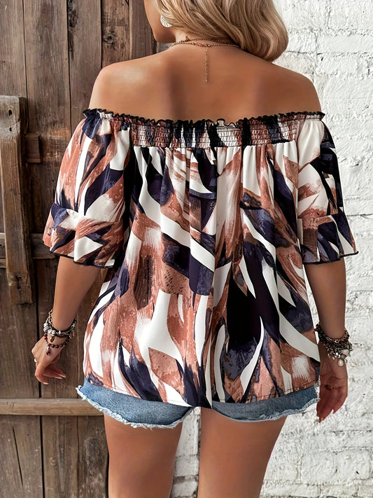 Plus Size Summer Elegant Shirt Off the Shoulder Casual Fashion Vacation Tops Female Curve Clothing