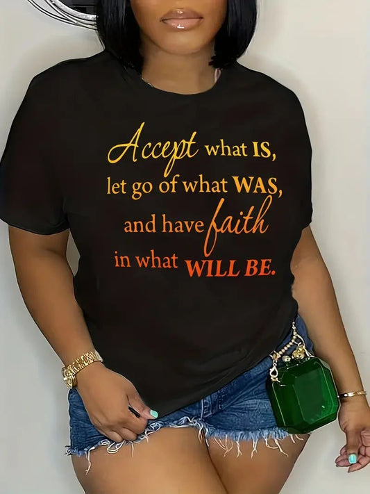 Plus Size Ombre Letter Graphic Tee - Short Sleeve Round Neck Casual Top | Luxury Streetwear
