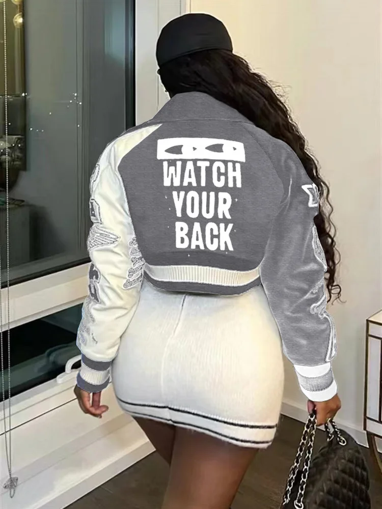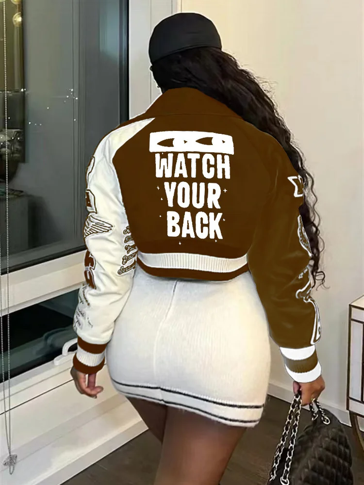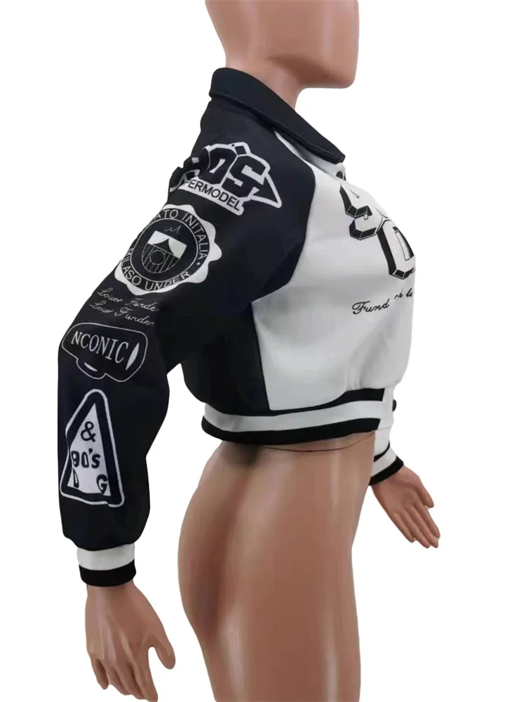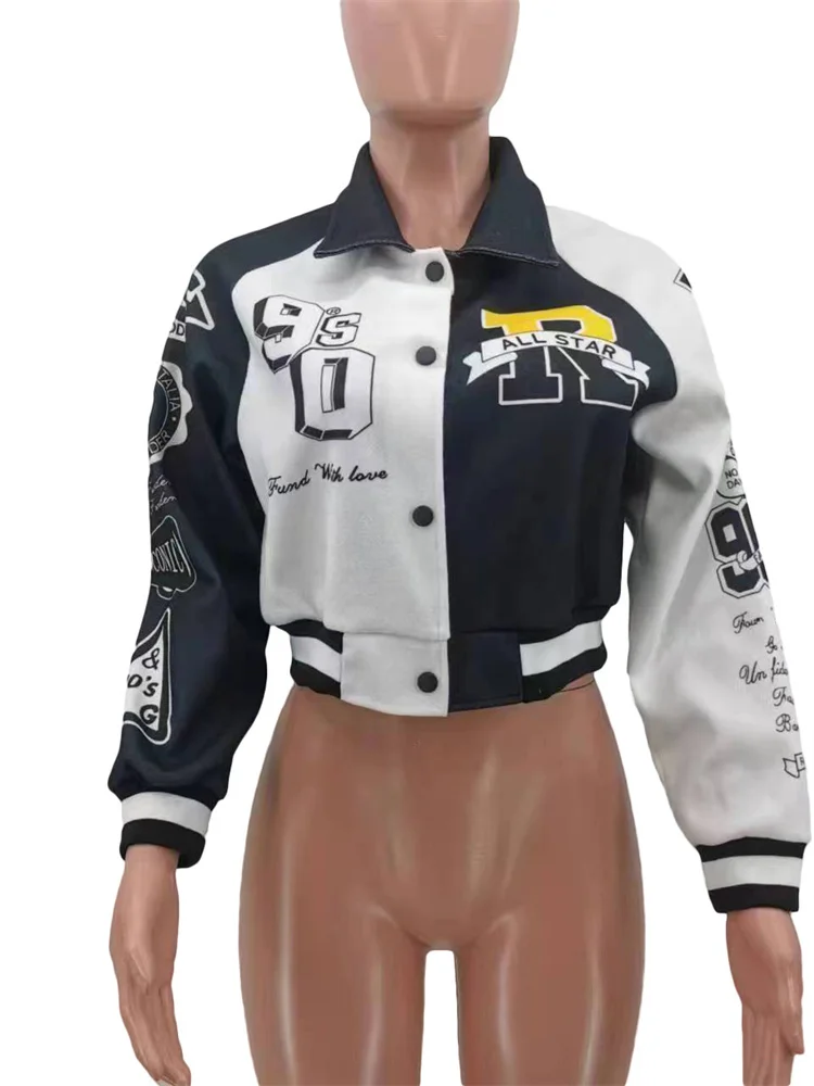 Fashion Baseball Buttons Fall Jackets For Women 2023 Crop Tops Jackets Coats Varsity Bomber Long Sleeve Print Green Black Jacket