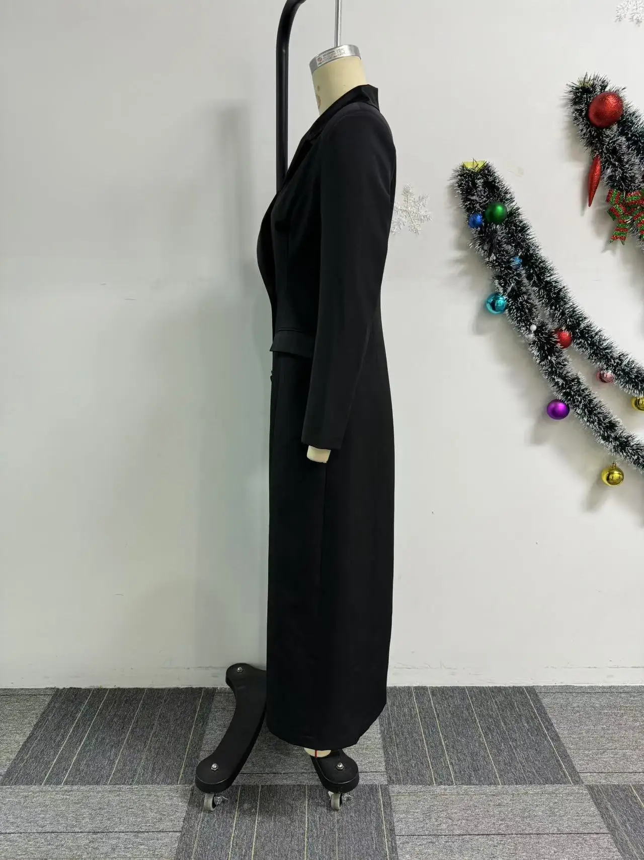 Plus Size Spring Autumn New Solid Color Matching V-Neck Long Sleeves Fashion Commuting Slim Fit Elegant Style Long Maxi Dress
